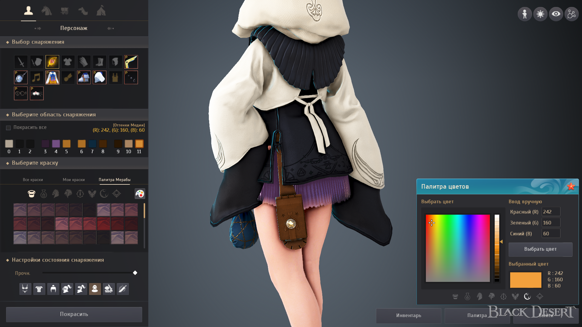 Давно мечтала о такой функции! Большое спасибо, что дали попробовать! <3 Теперь у меня есть огромный выбор цветов, от тусклых до неоновых. Цвета вина, мяты, сирени, персика, хаки, армейский зеленый, корицы, пастельные оттенки... нашла для себя собственный золотой цвет: 48/28/1/Медия. Могу "косплеить" любимых персонажей из других игр, аниме, фильмов, комиксов. Теперь нет проблем покрасить волосы в Тёплый белый, насыщенно красный, мятный. Единственное чего не хватает, это возможность палитры "запоминать" выбор цвета волос. Можно еще добавить возможность сохранять настройки цвета в свою палитру, как в графических редакторах, и может быть делиться с игроками настройками. ^^