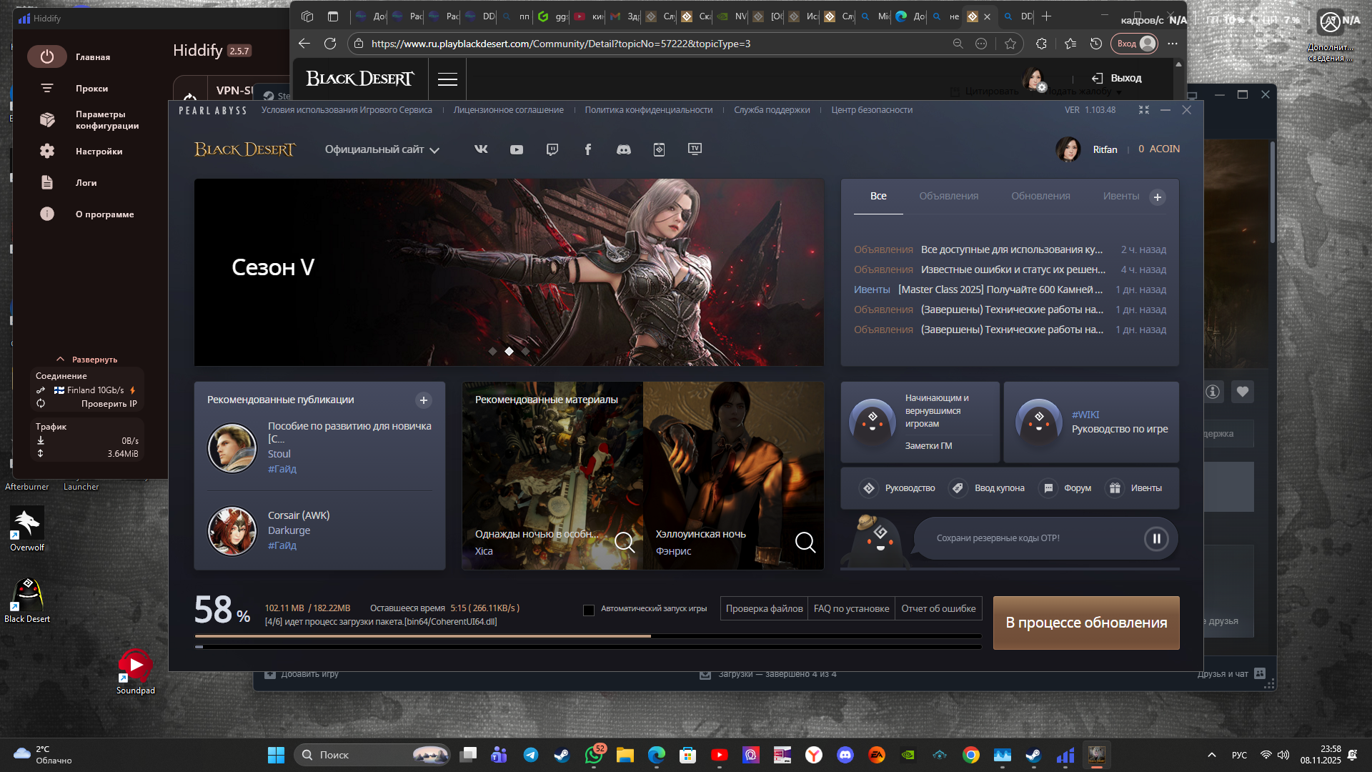 Последнюю неделю играю только через VPN. В техподдержку писал 2 раза. Советуют перезагрузить роутер и проверить файлы. Другого они не знают в принципе. Установите Proton VPN и проблема пропадет. У меня платный 10 $ в месяц. Скорость 10 Гбит, пинг 1 мс. На бесплатном игра будет на 30 fps, это если не ходить на боссов. Сервер этой программы находится в Швейцарии. Я играю подключаясь к Нидерландам. Ну а кто хочет дождаться стабильной игры, смотрим картинку. На сегодня в России 16 отключенных серверов. Техподдержка тут не поможет. VPN проложит путь в обход отключенных серверов.