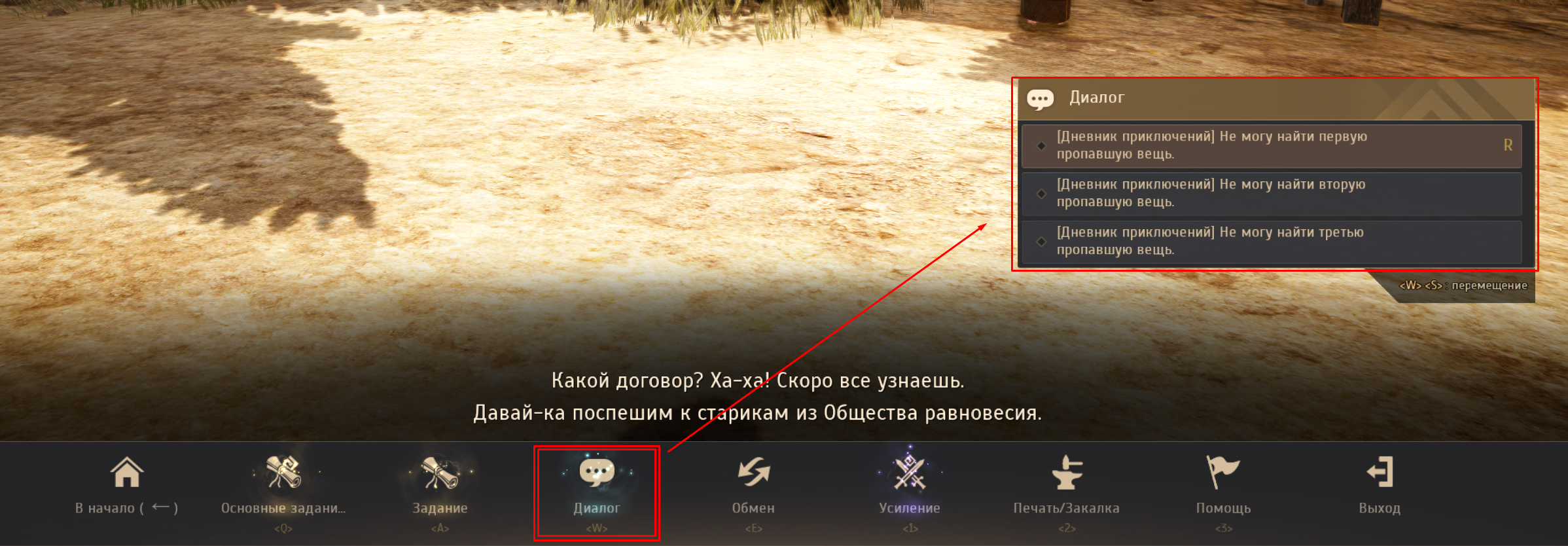 Я пришел на верное место и не могу найти там диалог который должен выдать мне предмет.