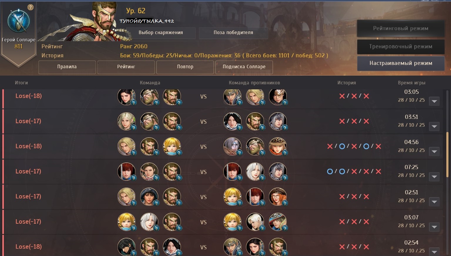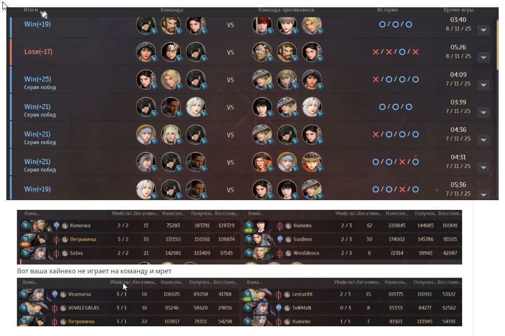 Я не говорю, что я скилловый игрок или тимейты раки, а я молодец, нет, я тоже часто лузаю из-за своей криворукости, чем могу подвести своих тимейтов, но я, играя на совершенно новом для меня классе, почему-то выхожу по итогу в плюс, а ты, скуля и извергая из себя тонны гнили (жаль не заскринил, как ты сравнивал своих тимейтов с одной национальностью и называл их, мягко сказать "тупыми") - научись уже наконец-то играть, друг мой, слиться из "1200" в зеленый ранг - это что-то на волшебном и, что очевидно, за пару дней не сделается, а шанс того, что ты проиграешь 30+ игр подряд - так же из области фантастики, особенно, учитывая то, что в первый день арену регали реально сильные пвп игроки и кто-то да протащил бы тебя. Я тебе советую ознакомиться с такой вещью, как внесение импакта, лучше я нанесу 10% от всего урона команды, но именно мой контроль позволит тимейтам запинать противника, чем буду, как ты, дро*ить в инвизе и, так же гордо, надра*ивать циферки урона, постоянно вопрошая "как же ты так сильно играешь, а не летит чота и тимейты раки". Я уже лично увидел как ты играешь и все о чем я прошу, каждый раз начиная новую регу - лишь бы ты не попался со мной. Хотя, судя по тому в какое дно ты улетел - это вряд ли случится.