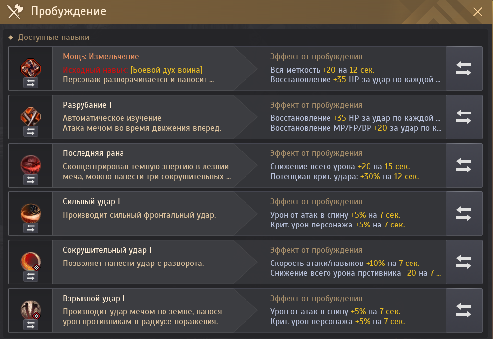 "Двойное рассечение" и "Ярость клинка" - используется при необходимости дать контроль "Ошеломление". Также снимает защиту у врагов, но мной перестал использоваться ввиду не слишком высокого урона и присутствия аналогичного эффекта у другого навыка через "Пробуждение". После использования можно провести дополнительную атаку. При необходимости, прожимаю его вручную.