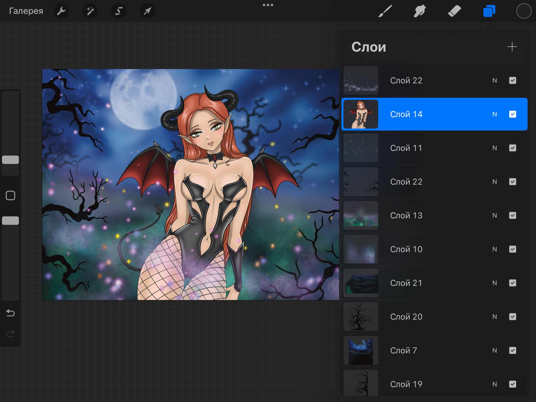 Скриншоты со слоями в Procreate, где я рисовала арт.