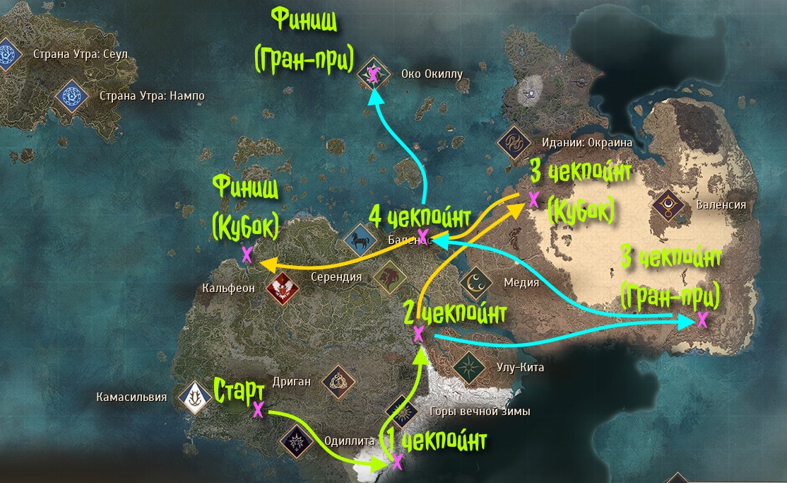 Большинство игроков участвовало в Гран-при, где путь затрагивал пустыню, а финишировать надо было на Оке Окиллу. У кого не было обители Крогдаллора, скакали по упрощенному маршруту с финишем в Эферии. А наездники на осликах ехали по автопути в гильдийный особняк и смотрели трансляцию.