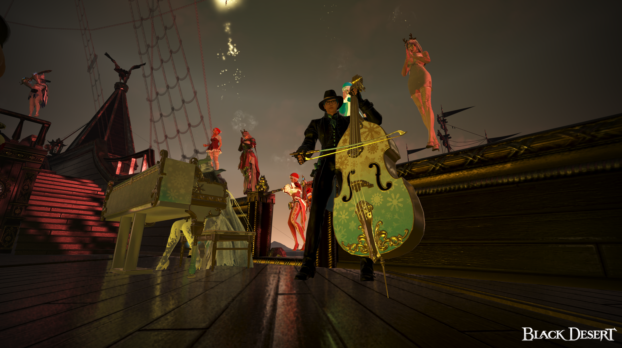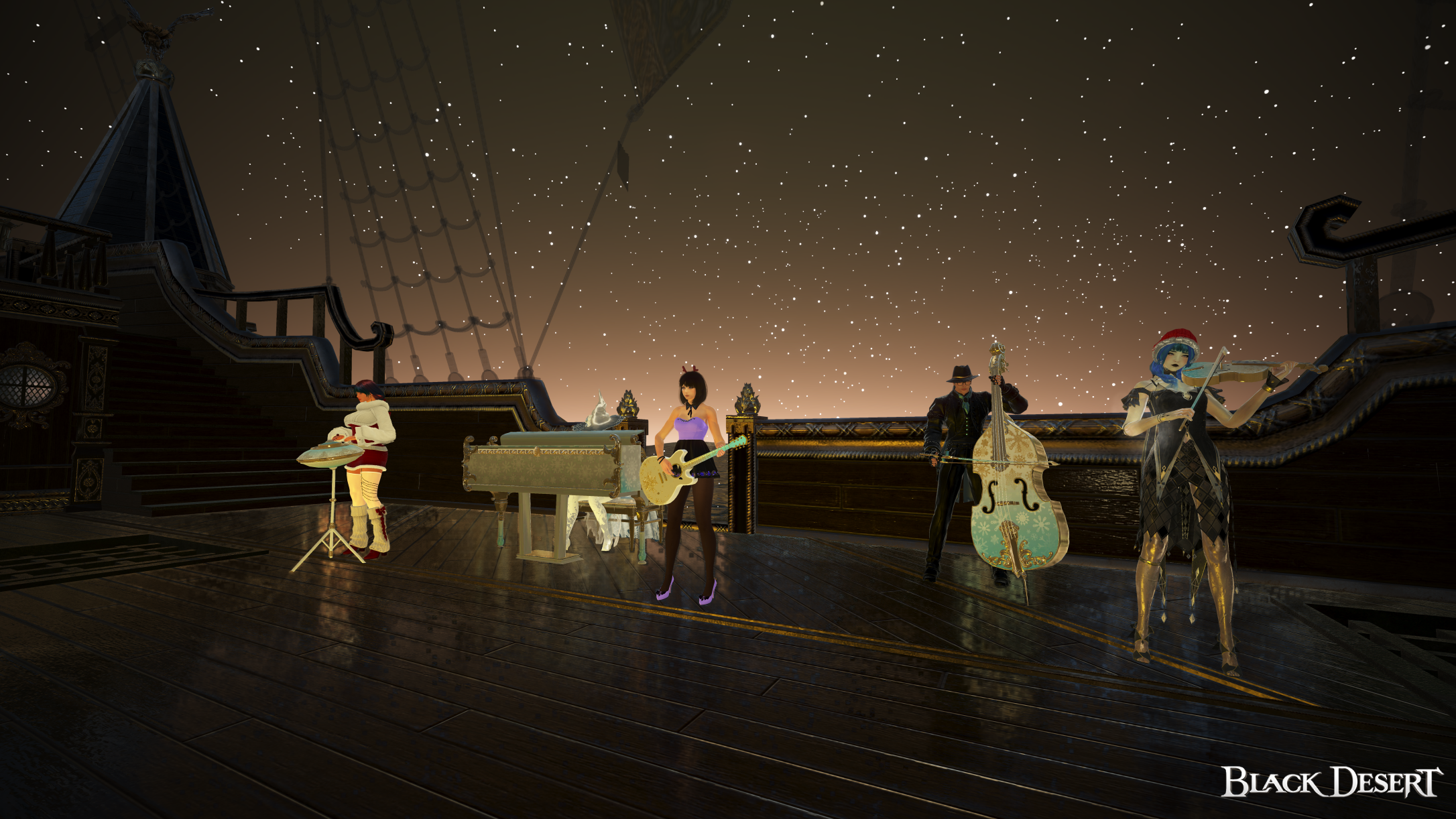 Музыка появилась незаметно - сначала как фон, а потом заполнила собой всё пространство. Звуки инструментов смешались с шумом волн, и корабль будто зажил своим собственным ритмом. Это было прекрасное выступление с известными композициями!
