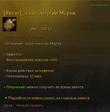 3.) [Ивент] Кувшин с энергией и [Ивент] Зелье энергии Марни дают мгновенно 100 энергии. Имеют кд в 10 минут, но можно прожимать с эликсирами энергии выше, кд с ними раздельное.