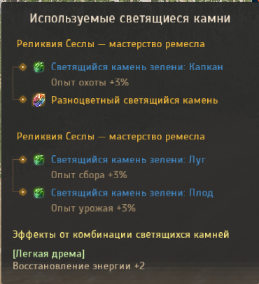 Пресет светящихся камней в реликвиях: Легкая дрема (лучший выбор) |