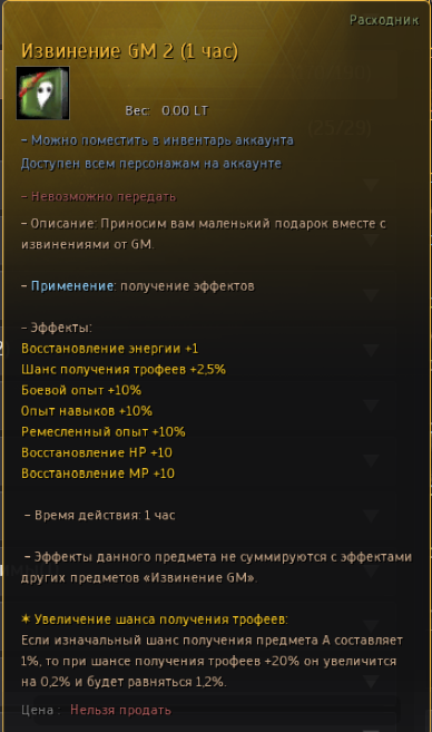| Извинение GM | 1 энергия | Ивенты. |