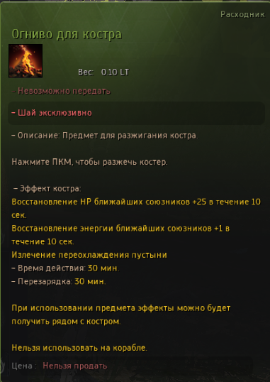| Огниво для костра | 1 энергия |