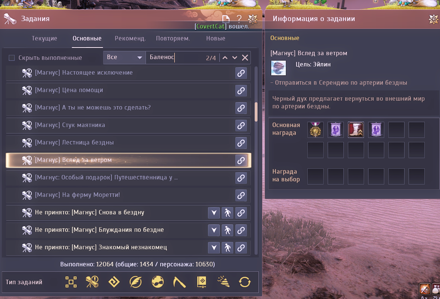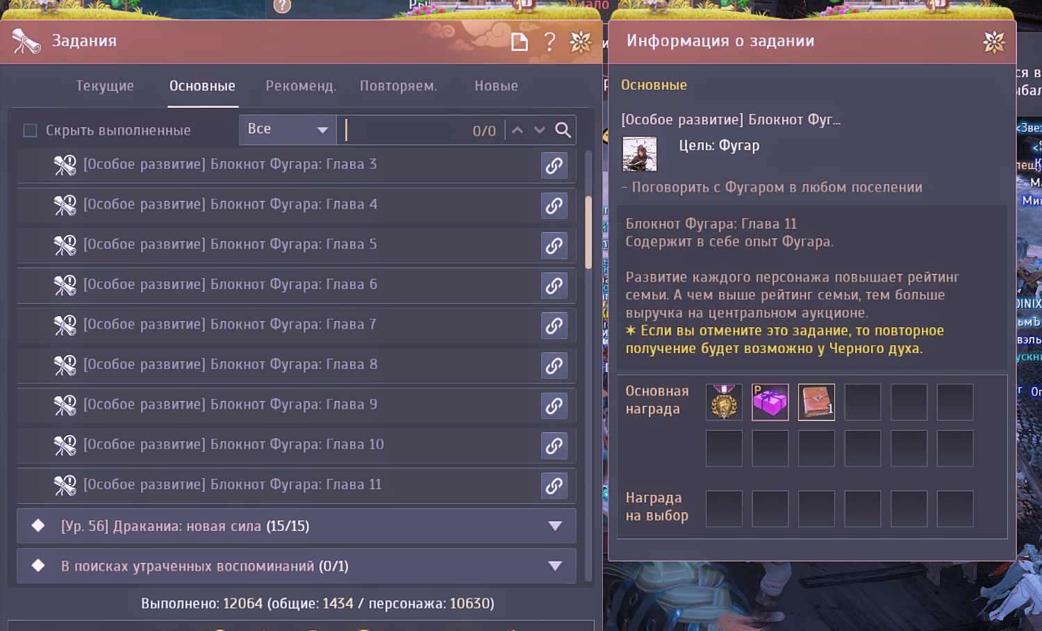 Но персонаж был стареньким с начатыми основными квестами до реорганизации.