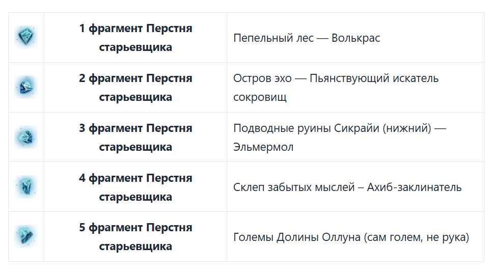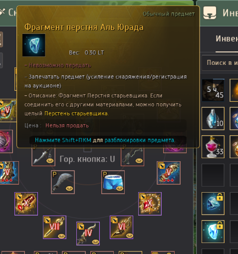 Итак, у нас есть 5 фрагментов перстня которые надо добыть лютейшим рандомом.