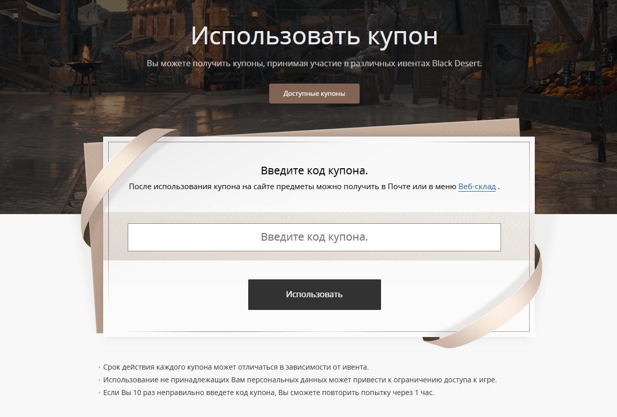 - Приложение Black Desert+: Купоны