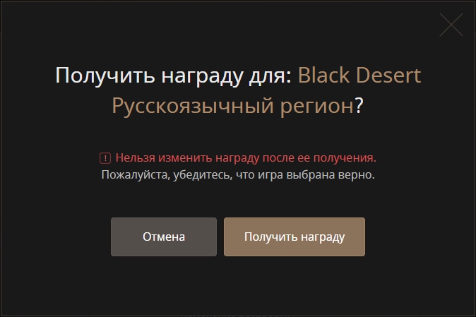 Убедитесь, что выбранная игра и регион соответствуют учетной записи, для которой вы хотите получить награды, затем нажмите [Получить награду].