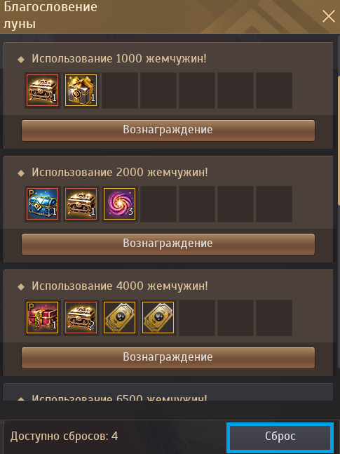 ▲ После получения всех наград Благословения луны попробуйте нажать кнопку «Сброс».