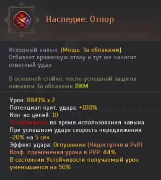 Урон кругового контрудара: 4857% x 2 Коэф. применения урона в PVP: 33,95% |