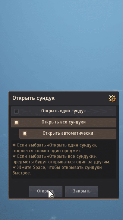 - В интерфейсе открытия сундуков теперь при нажатии на кнопку «Открыть автоматически» также активируется кнопка «Открыть все сундуки».