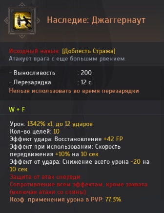 - После изучения навыка «Наследие: Доблесть Стража» он будет активироваться автоматически при использовании навыка «Джаггернаут».