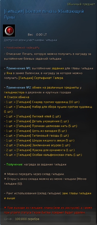 Обмен [Гильдия] Боевых/Ремесленных печатей Убывающей Луны |