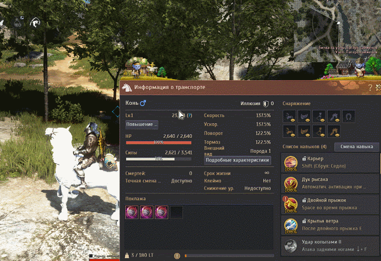 ● При возврате арендованной лошади накопленный опыт полностью обнуляется.