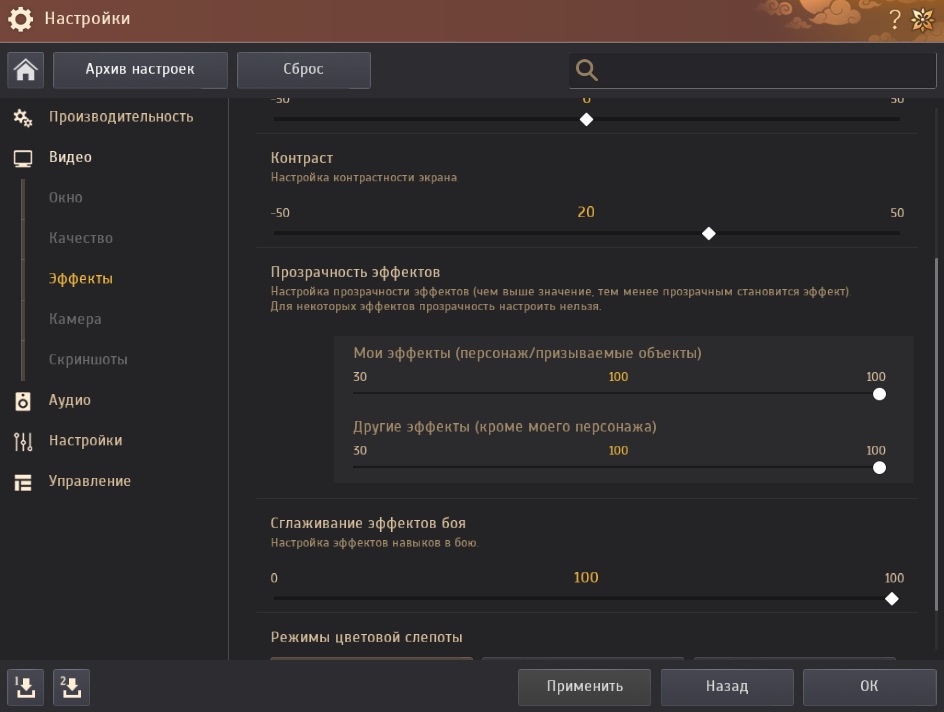 - В меню (ESC) - Настройки - Видео - Эффекты параметр «Прозрачность эффектов» теперь разделен на два вида: для эффектов своего персонажа и для остальных эффектов. Каждый из них можно настраивать отдельно.