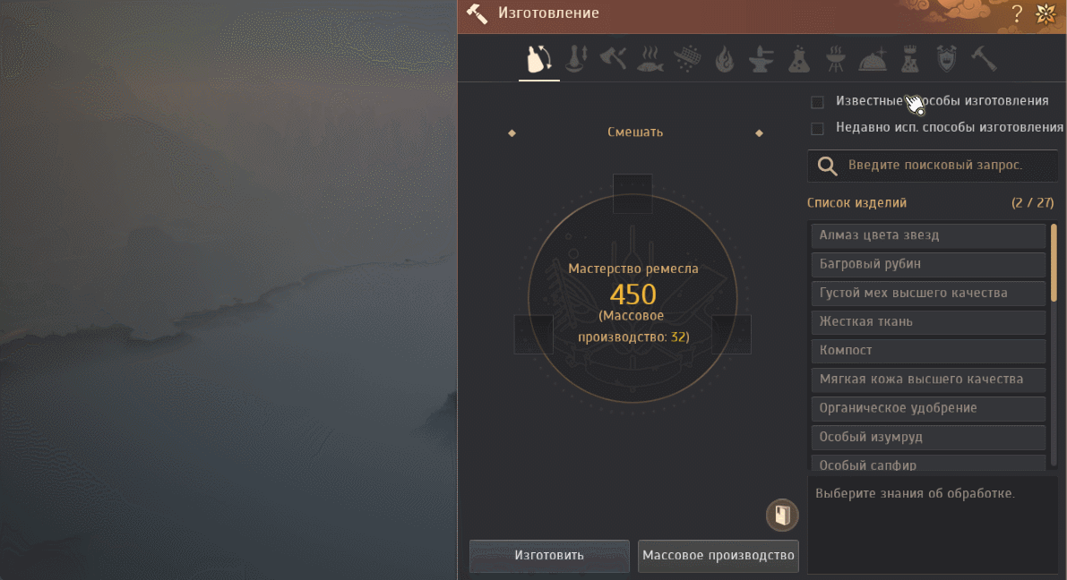 - В нижней части интерфейса изготовления теперь отображается описание выбранных знаний.